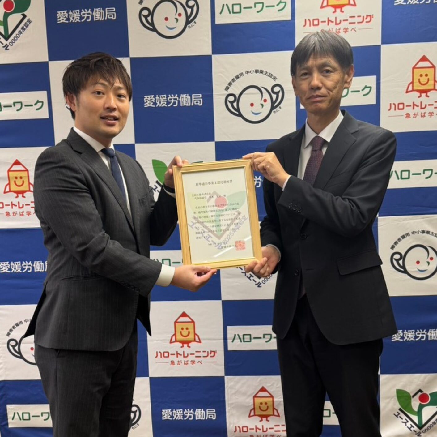 厚生労働省が、若者の採用・育成に積極的で、若者の雇用管理の状況などが優良な中小企業を認定する「ユースエール」。この度弊社では、離職率の低さ、若手人材の育成への取り組みを評価いただき、認定をいただきました。