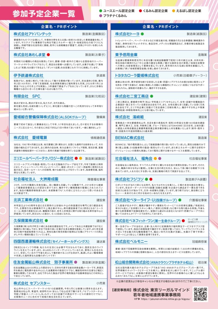 愛媛労働局主催の合同企業説明会に、ブース参加致します。